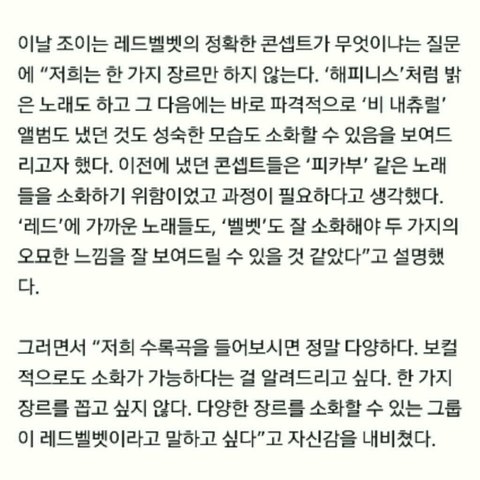 조이가 한 말..우리는 하나의 컨셉만 하지 않는다. 뭔가 멋지지 않아?