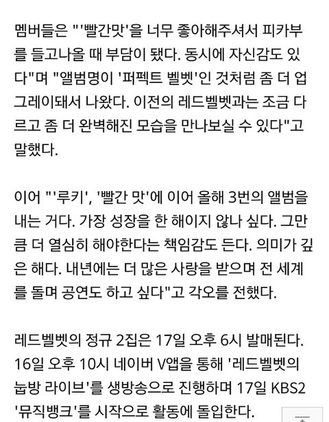 내일 오후 6시에 퍼펙트 벨벳 정규 2집 앨범이 나와!