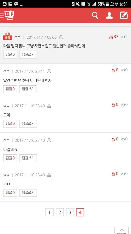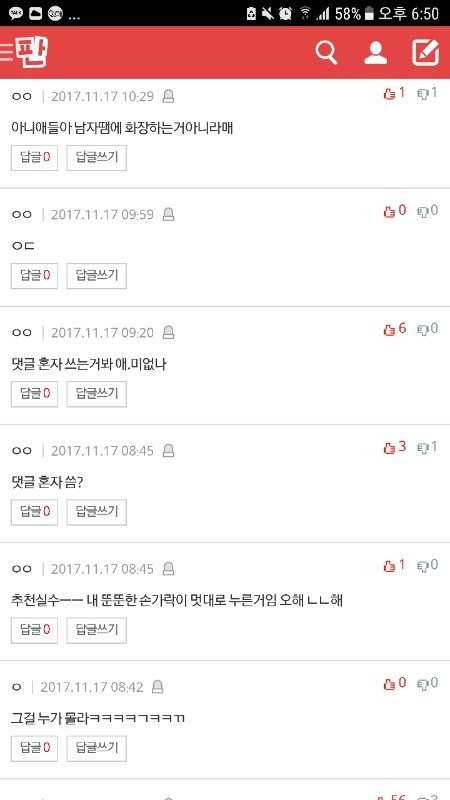 적어도 너희보다는 내가 나은 것 같지 않니? 내가 자신감있게 이런 글 올린 이유도 남자친구들이나 남자애들한테 청순하다는 말 많이 들어봐서 올리는거야ㅎㅎ 그리고 내가 화장법 올려놨는데 왜 안 찾아가고 여기서 꿀꿀대니.. 진짜 누구말마따나 정신병 걸린 것 같다~~^^ 할 말 다 해주면 풀발이라고 하고.. 할 말 안 하면 논리 딸린다 하고.. 뭘 어쩌라고 시1발ㅋㅋㅋㅋㅋㅋㅋㅋㅋㅋㅋ