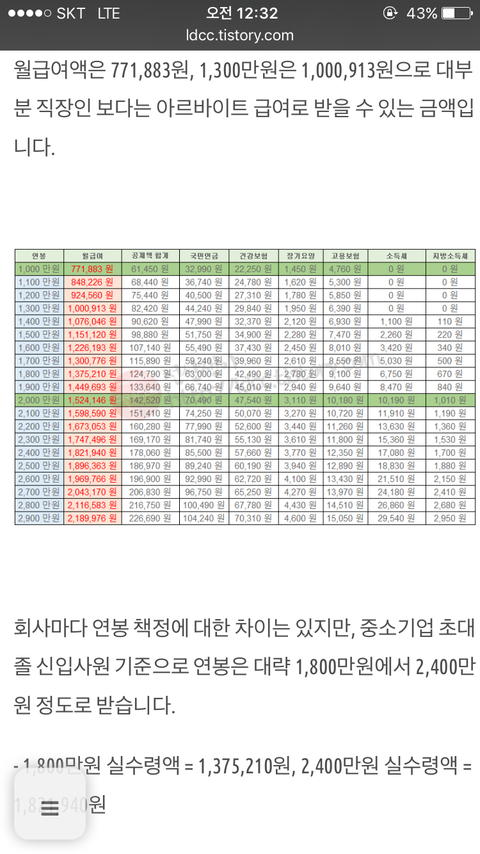 급여 실수령액표 입니다... 한번 보시고 설명이나 조언좀 부탁드리겠습니다