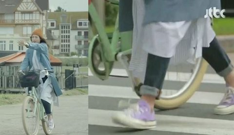 비니쓰고 컨버스신고 자전거타는데