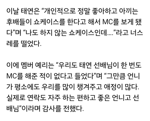 태연 원래 mc 잘 안보는데 레드벨벳이라서 한번에 하겠다고 한거임. 애초에 저걸 비꼴려고 말한게 아니라 그만큼 대단하다고 해주는건데 도대체 뭐가 그렇게 맘에 안들어서ㅋㅋㅋㅋ 어지간히도 태연이 싫은가보네ㅋㅋㅋ