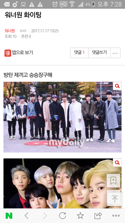 ㅋㅋ 좀전에 나랑 동시에 올렸던 너부리 있었지? 동시에 지웠다가 내가 다시 올렸어