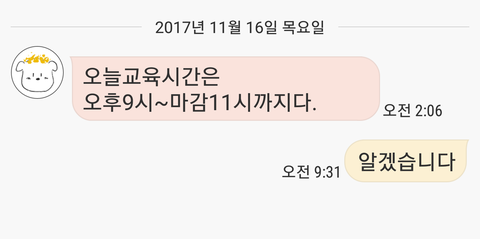 모레 저녁8시까지 교육 오라고 했는데