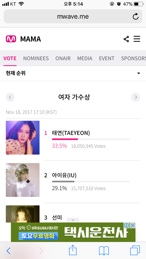 마마 안나올거다 뭐다 해도 상 받을 부문 많아서 상 많이 많이 안겨주고 싶어ㅠㅜㅜㅜㅠ 투표 부탁해 며칠 안 남았어