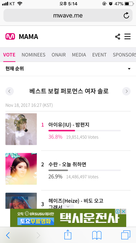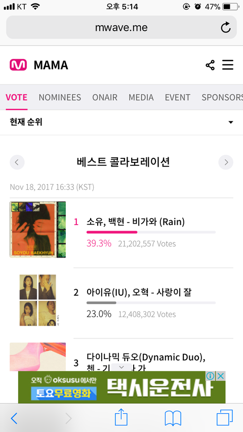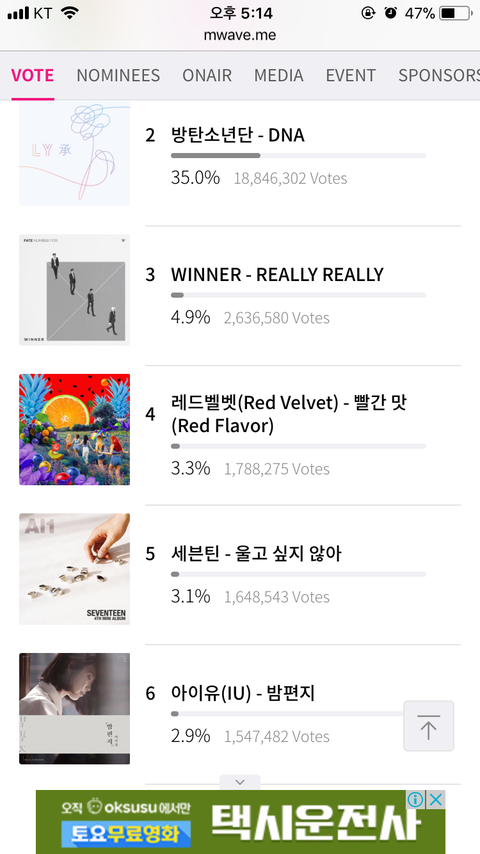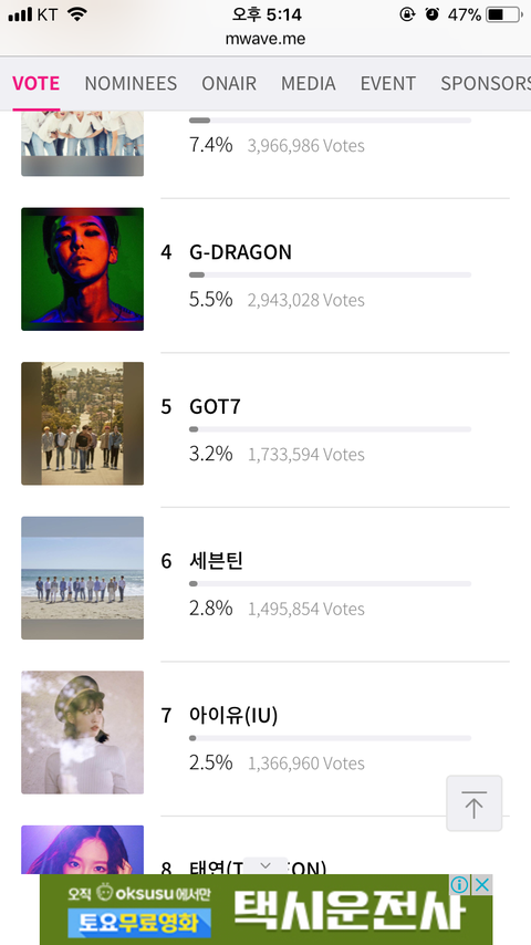 올해의 노래와 가수 부문 투표는 적어도 5위는 되자,,ㅠㅜㅜ