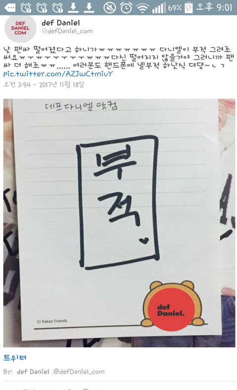 아 그리고 팬싸에서 녜리가 광탈하지 말라고 부적 써줬대 이거 본 녤부리들 모두 당첨길 걷자 (나도 제발..사이버 가수 덕질 멈추고 싶다)