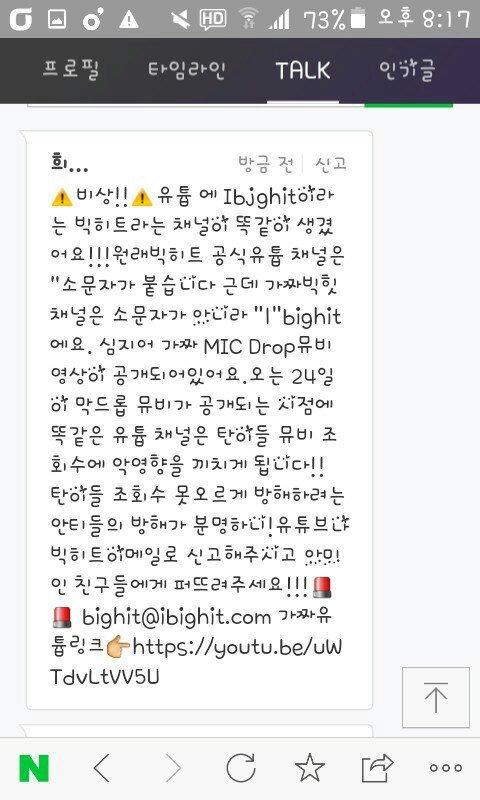 ‼️가짜 너튭 빅힛계정주의‼️