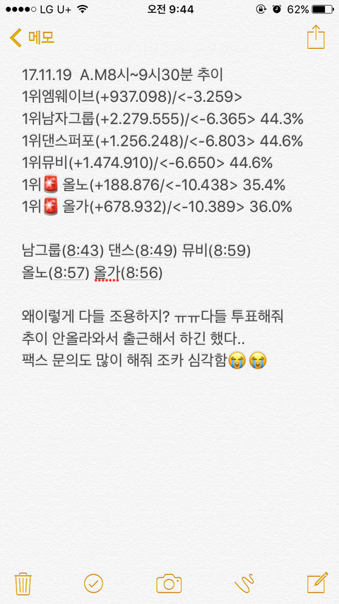 다들 일어났으면 투표좀 해줘 ㅠㅠ