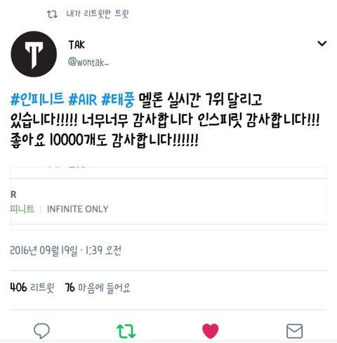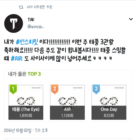 저분 에어 진입 7위했을때 틧인데ㅋㅋㅋ이런거 보면 스밍한거보람느껴지고 뿌듯해ㅠㅠ