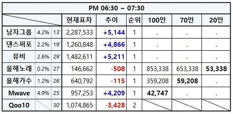6시30분~7시30분추이❌올노 올가마이너스❌