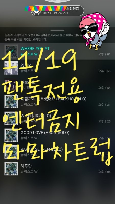 < 2017. 11. 19 일요일 오후 8시 30분 기준 > 남자 그룹상