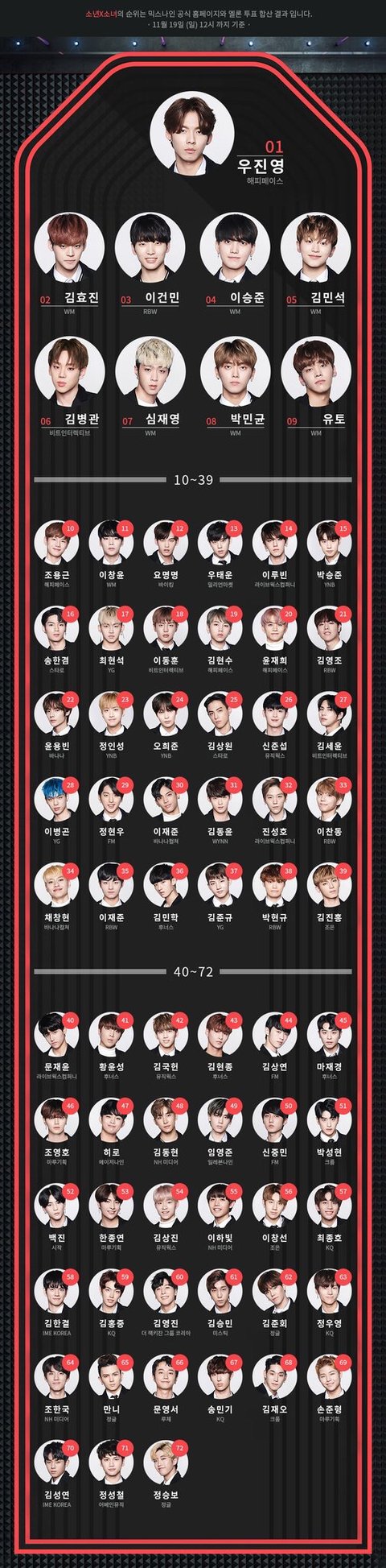 보는데 프듀가 대박이긴 했나봄. 순위보면 프듀나왔던 애들은 대부분 순위가 높음. 이건민도 3등이고 윤용빈? 바나나 걔도 순위 높음 은근. 여자쪽도 그렇고.. 근데 원래 높아야했던 애들이 이제야 빛을 본거라 프듀빨이라고 딱히 말 안하구 싶음