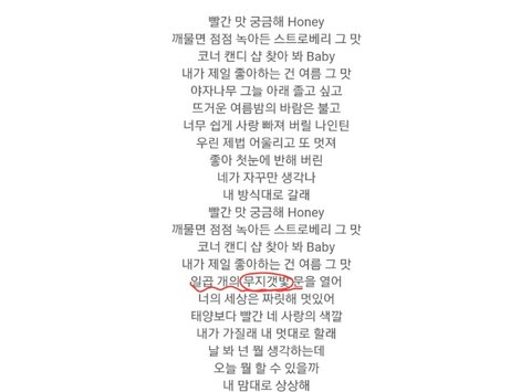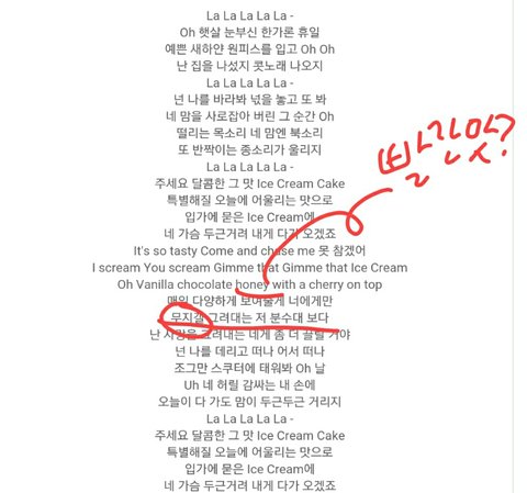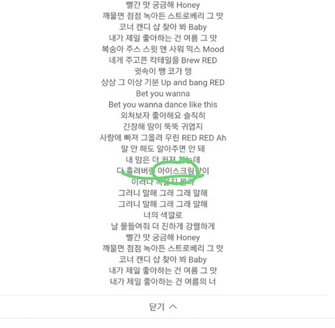 그리고 아크케 가사에 바닐라 초콜릿 허니 윗더 체리온탑 이 부분에 허니 있잖아 ㅋㅋㅋㅋ이부분도 빨간맛 가사에 허니 나오는거랑 관련있을지도 몰라서 줄그어놓음ㅋㅋㅋㅋ)이건 아닌듯 하다..ㅎ