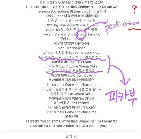 + 참고로 제목에 빨간맛 안적은이유는 아크케 가사랑 피카부 뮤비랑 관련있는게 중요해보여서 두개만 썼엉!!