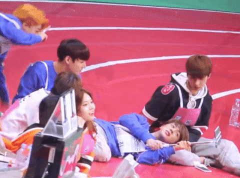 눈떠보니까(춤추다 넘어진걸로 추정)