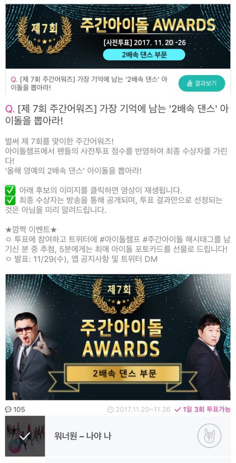 두가지 부문 2배속댄스랑 아챔상 26일까지
