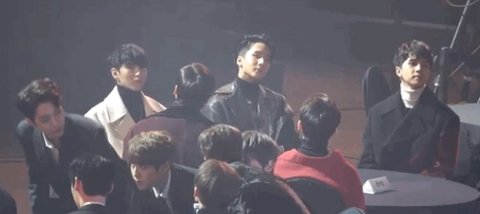 빅스 멤버들은 그냥 앉아만 있음. 여기서 안보이는데 빅스 뒤에 테이블 사람들도 다 일어나서 박수치는데 끝까지 빅스 멤버들은 앉아있고 표정도 무표정;