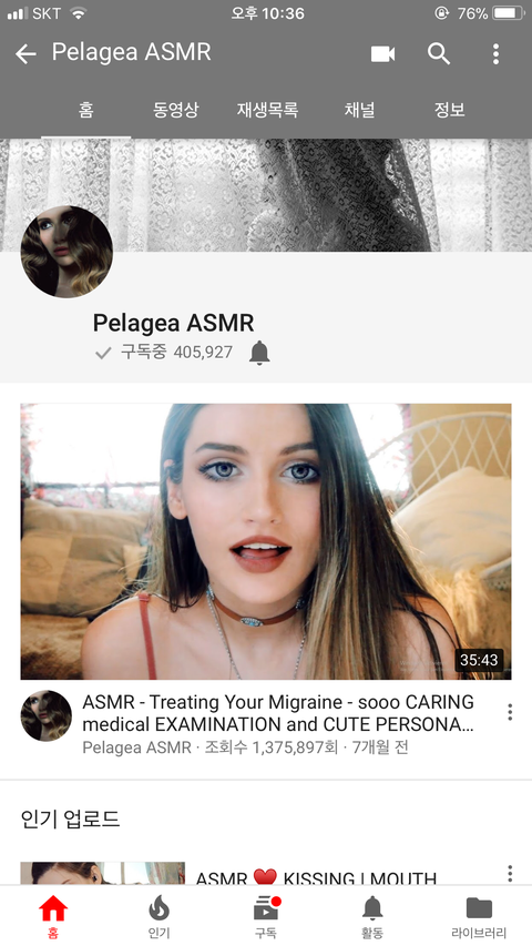 채널이름은 Pelagea ASMR 이고 엄청난 미모를 소유하고 계심