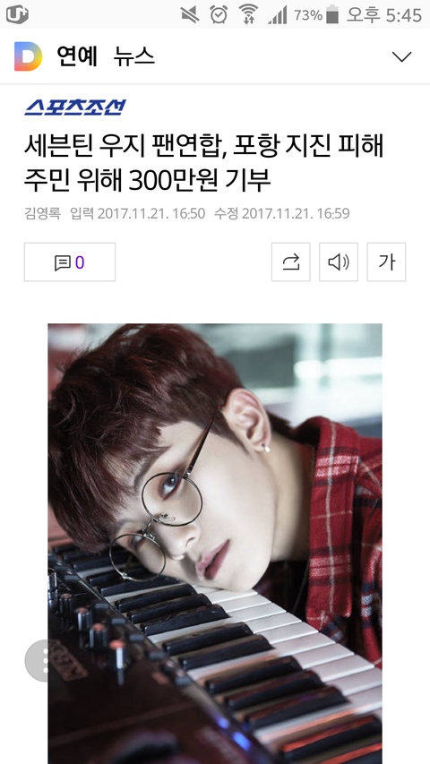 어제 세븐틴 단체로 포항지진 성금 했는데