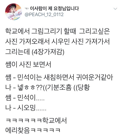 새침하고 귀여운 민석이ㅋㅋㅋㅋㅋㅋㅋㅋㅋㅋ선생님 즐덕하세요!!!
