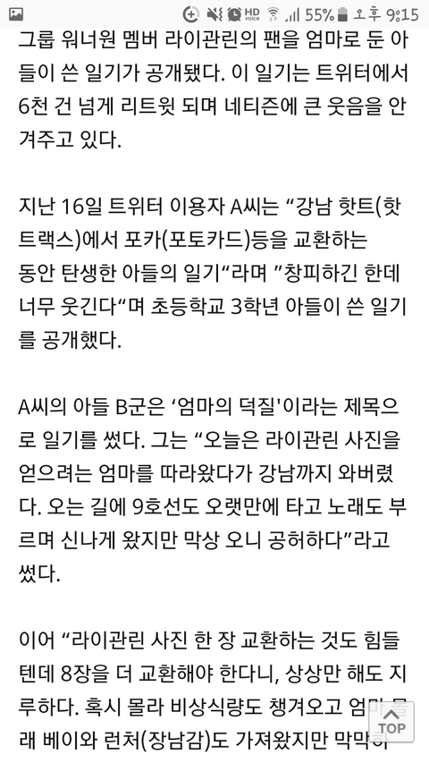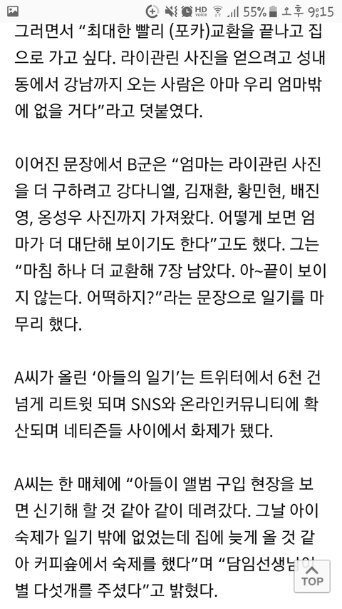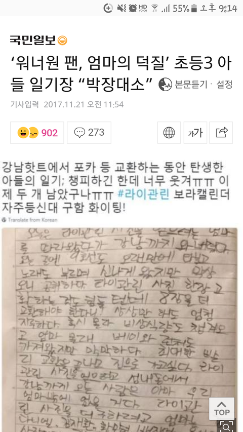 이거봄??ㅋㅋ 관린이 팬 아들 일긴데, 완전 귀여움ㅋㅋ