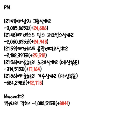 《Ma마 남자 그룹상/ 현재 1위와 -3,085,865 표 차》