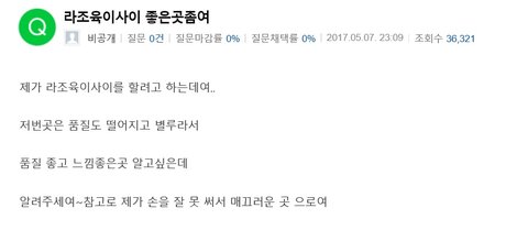 네이버지식인에서는 사람이 죽어서 사망신고를 하면 네이버지식인 질문자 아이디를 비공개처리하고 마감,채택률이 0퍼된다고 들었거든? 근데;; 네이버괴담 찾아본다고 라조육이사이 검색했는데;; 와 진짜 너무소름이야ㅠㅠㅠ 저거봐 질문 올려져있는데 질문이 0개 마감,채택률이 0퍼야....