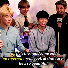태형이랑 정국이는 서로 고르고 남준이는 정국이라고해서 정국이가 고맙다고 하는거봤어?? 남자미국인 인터뷰하는분이 정국이 이쁘다고도 해ㅋㅋㅋ
