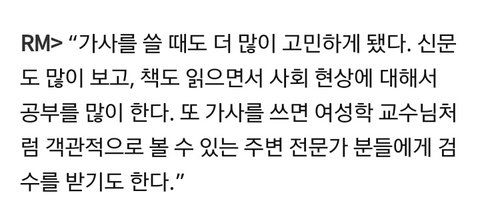 끊임없이 노력하고 배우고 사회 문제를 외면하지 않고 함께 싸워나가는 남준이 참 멋있지 않아?정말 가수 그 이상으로 나에게는 멘토와도 같은 존재인것 같아