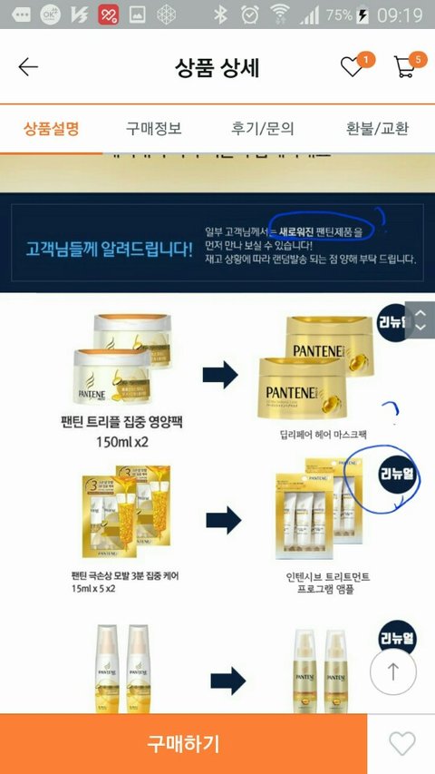 ~사진 첨부 한것 처럼~ 제가 구매한 팬틴제품이 리뉴얼 되서 다른 제품으로 먼저 만나볼수 있다고 하더군요~~