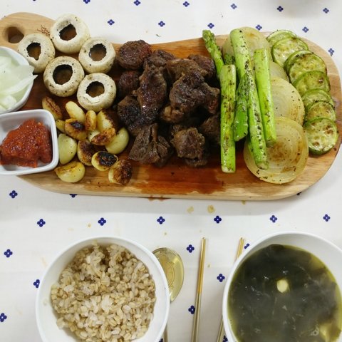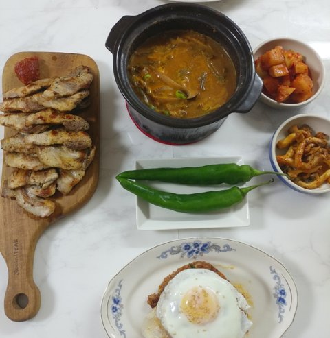 ㅎㅎ장보러 마트에 갔더니 고메스테이크가 유행 이더라구요. 살까했지만...제 양껏 먹기엔 부족하다는 판단이들어..직접치대서 만들었어요. 시간이 남으니 이런게 좋더라구요. 고기 넉넉히사니 장조림용 고기 좀 붙여주셔서 저끝에 꽈지고추 한봉지사다가 장조림도했어요. 그저 고기밥상입니다!