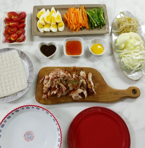 어느날인가 장 볼때 라이스페이퍼가 할인하길래 잔뜩 사두었는데, 짬이나 정리하다보니 발견했어요. 그래서 냉장고 야채모두탈탈털어서 월남쌈 해먹었어요. 고기는 전날 동네마트에서사다먹고 남은 훈제치킨반마리에요. 사진엔 없지만 깻잎을 잔뜩썰어서 같이먹었어요. 월남쌈의 8할은 깻잎과 칠리소스인것만같아요.