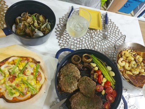 ㅎㅎ이날은 저의 퇴사를 기념하기위해 직장인 친구들이 와인을사들고 저희집을 방문한 날이었습니다. 바지락술찜, 감바스, 스테이크 모두 제취향이었지만 다행히 모두들 맛있게 먹어주어 감사했어요!
