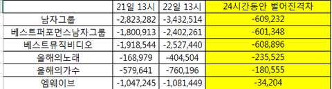 ‼️13시추이 및 24시간격차(개쌍욕나옴주의)‼️