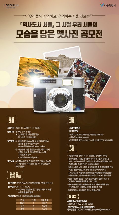❍ 공모내용 : 사진첩 속에 고이 간직하고 있던 서울의 모습이 담긴 옛 사진과 사진에 담겨 있는 나만의 특별한 이야기 공모