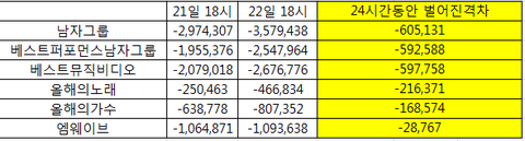 2) 24시간동안 벌어진 격차