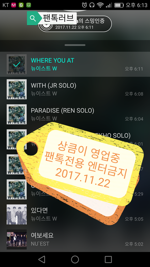 역시 친구가 아는 김종현 이미지와 뉴이스트W 의 JR의 이미지는 천지 차이 였어 ㅋㅋ친구 성격상 뉴이스트 팬까진 무리겠지만 그래도 아기깨비 까지 영업한것만으로도 만족해..