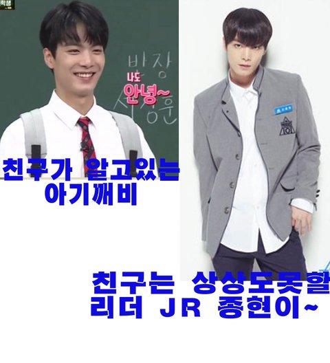프로그램 특성상 실력도 중요하지만 인성이나 리더쉽같은거 보고 뽑는 사람들도 많아~'라고 했더니 친구가 하는말.."리더쉽??"응 리더쉽! (믿기 힘들지? ㅋㅋㅋㅋㅋㅋ)"걔가??"라고 한번더 물어보는 친구에게믿기지 않겠지만 뉴이스트로 있을땐 달라~ 라며 다시 영업을 들어갔지