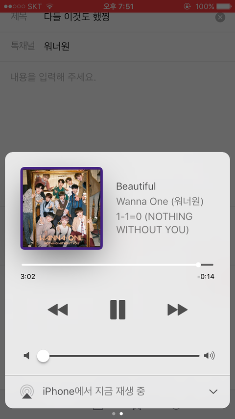 오늘부터 시작인데 출석체크하고 워너원 채널찜하기 누르고