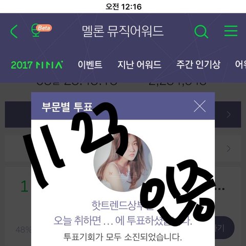 마마랑 멜뮤 안겹치는건 쭉 투표하고 있어 힘내!!!!
