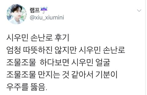 시우민의 모찌 볼살을 조물조물하는 간접체험을 할 수 있는 손난로라면 닥 사야져!!!!!!