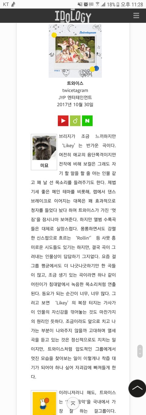 <아이돌로지 미묘의 트와이스 정규1집 평가>