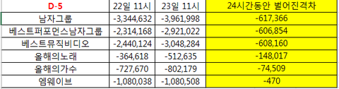 ❌22,23일 11시기준 24시간격차❌