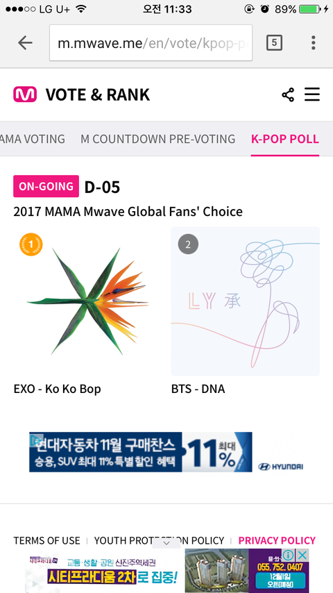 홈페이지에 뀨텐이랑 암웹 D-1 떠 있는데 투표하면
