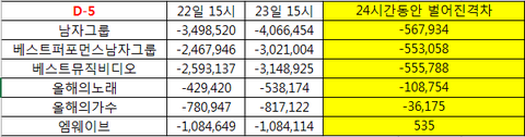 ⚠️22,23일 15시기준 24시간격차⚠️