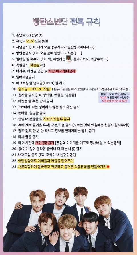 규칙 잘 모르는 이삐들 한번씩 보자...특히 사담 ㅇㄱㄹ 구분, ㅂㅁㄱ 타팬타가수 언급 추반금지 제발...