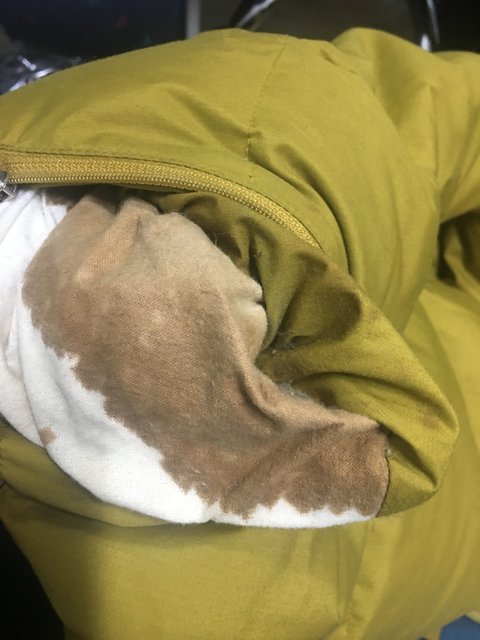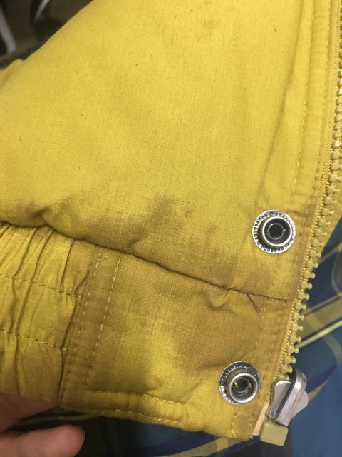 패딩 집업 열어서 보니까 지퍼 끝 쪽에 뻘건게