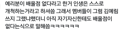 배울 점이 많은 멤버가 왜 없어 ㅋ ㅋ ㅋ ㅋ ㅋㅋㅋ ㅋ ㅋ ㅋ 다 자기보다 실력 좋은 멤버들인데 왜 저래 ㅅㅂ
