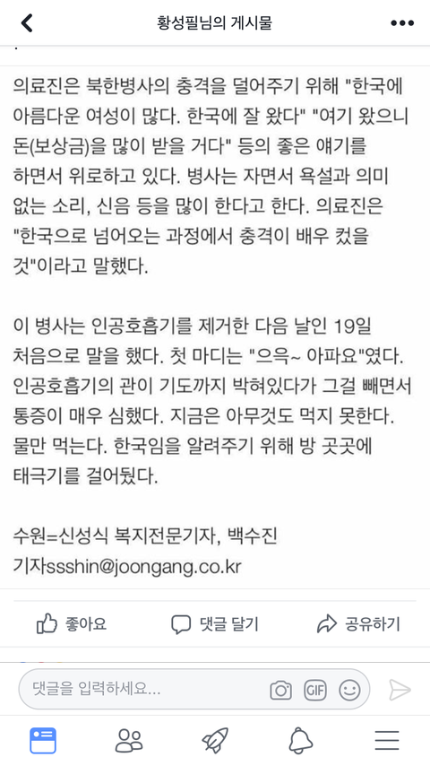 귀순병사한테 한국엔 이쁜 여자가 많다라고 한게 그렇게 열낼일인가?